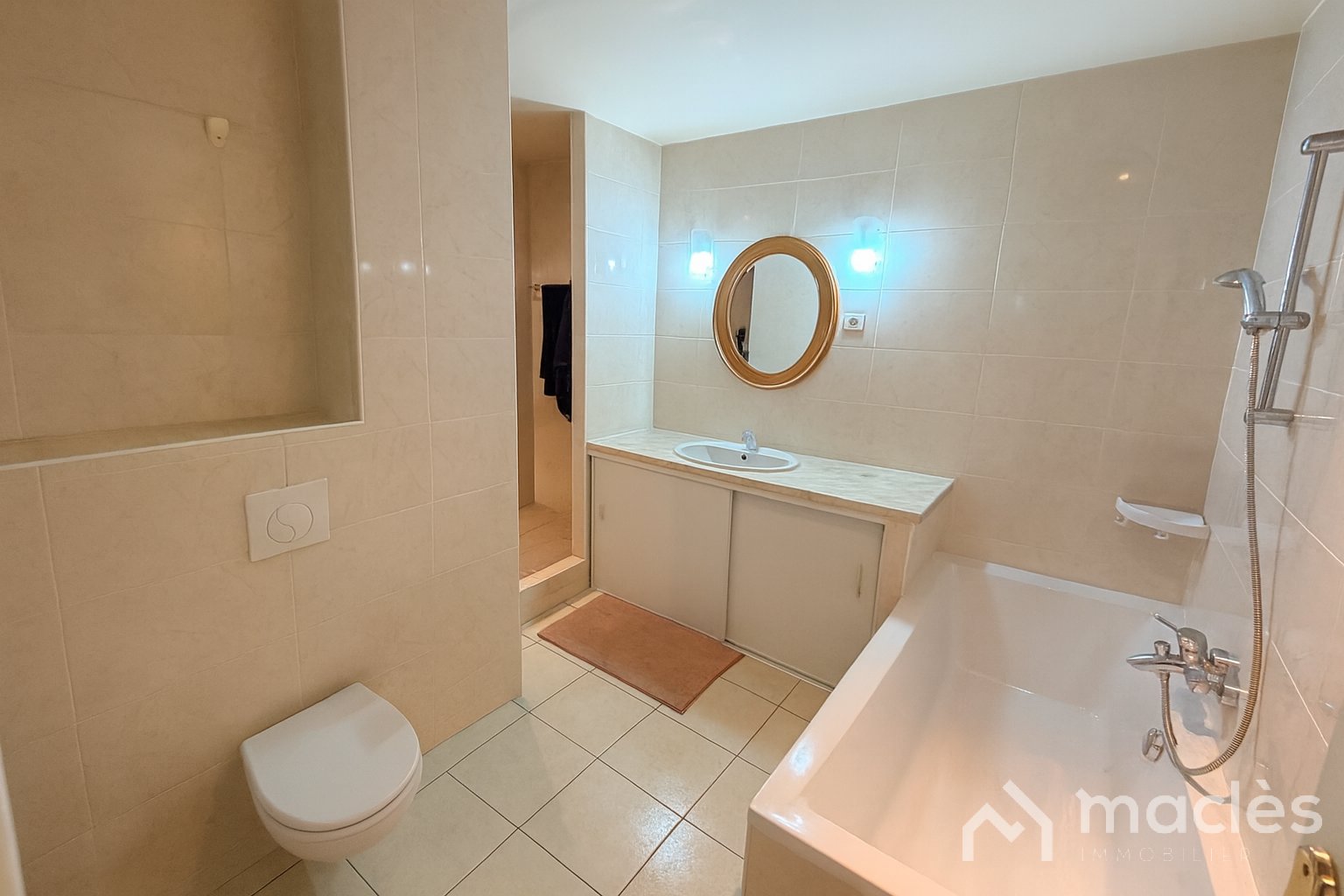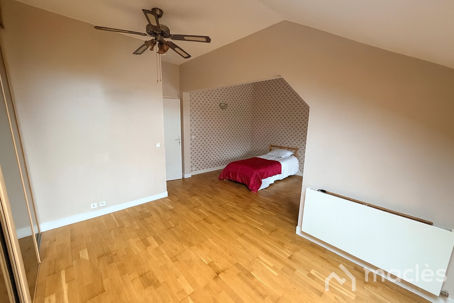 في جانب النوم، تشكل ثلاث غرف بعيدة عن الضوضاء ملاذًا مناسبًا للراحة. ينتظر العلية تحويله. هل تريد مكتبًا، ورشة عمل، أو غرفة رابعة؟ كل شيء يبقى ممكنًا، حسب مشاريعك وتطور احتياجاتك. هذا ما أسميه إمكانيات قابلة للتشكيل، تتناسب مع متطلبات استثمارك.