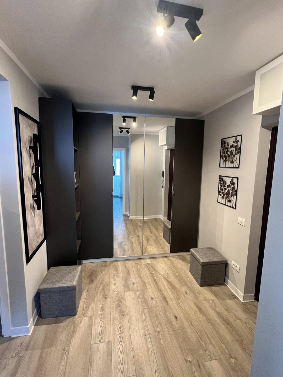 تخيل نفسك في غرفة المعيشة: يتدفق الضوء بسخاء من النوافذ الكبيرة، محولًا الغرفة إلى قوقعة حقيقية. أن تستقبل الضيوف أو تستمتع بلحظة من الهدوء يصبح أمرًا بسيطًا وممتعًا. الأريكة القابلة للتحويل تجمع بين الألفة والذكاء: حل ذكي لاستضافة العائلة أو الأصدقاء دون التضحية بالمساحة.