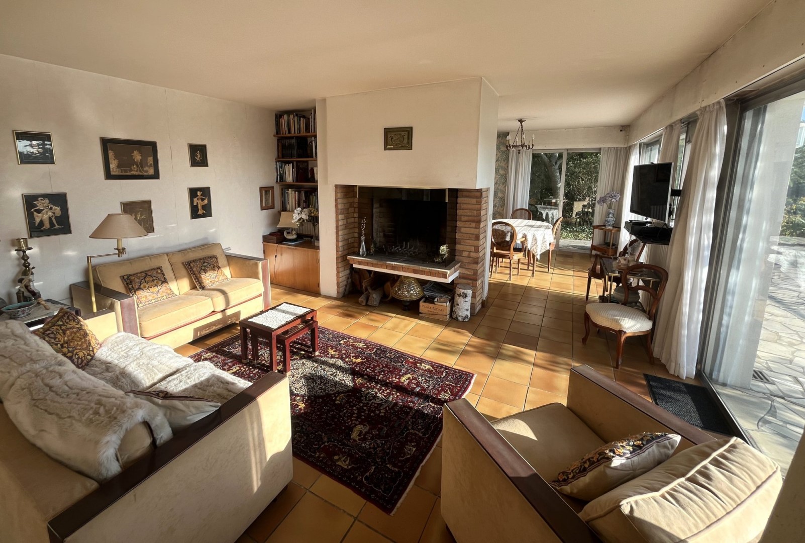 - صالة كبيرة مع مدفأة، وصول إلى التراس ومساحة خارجية مُعتنى بها