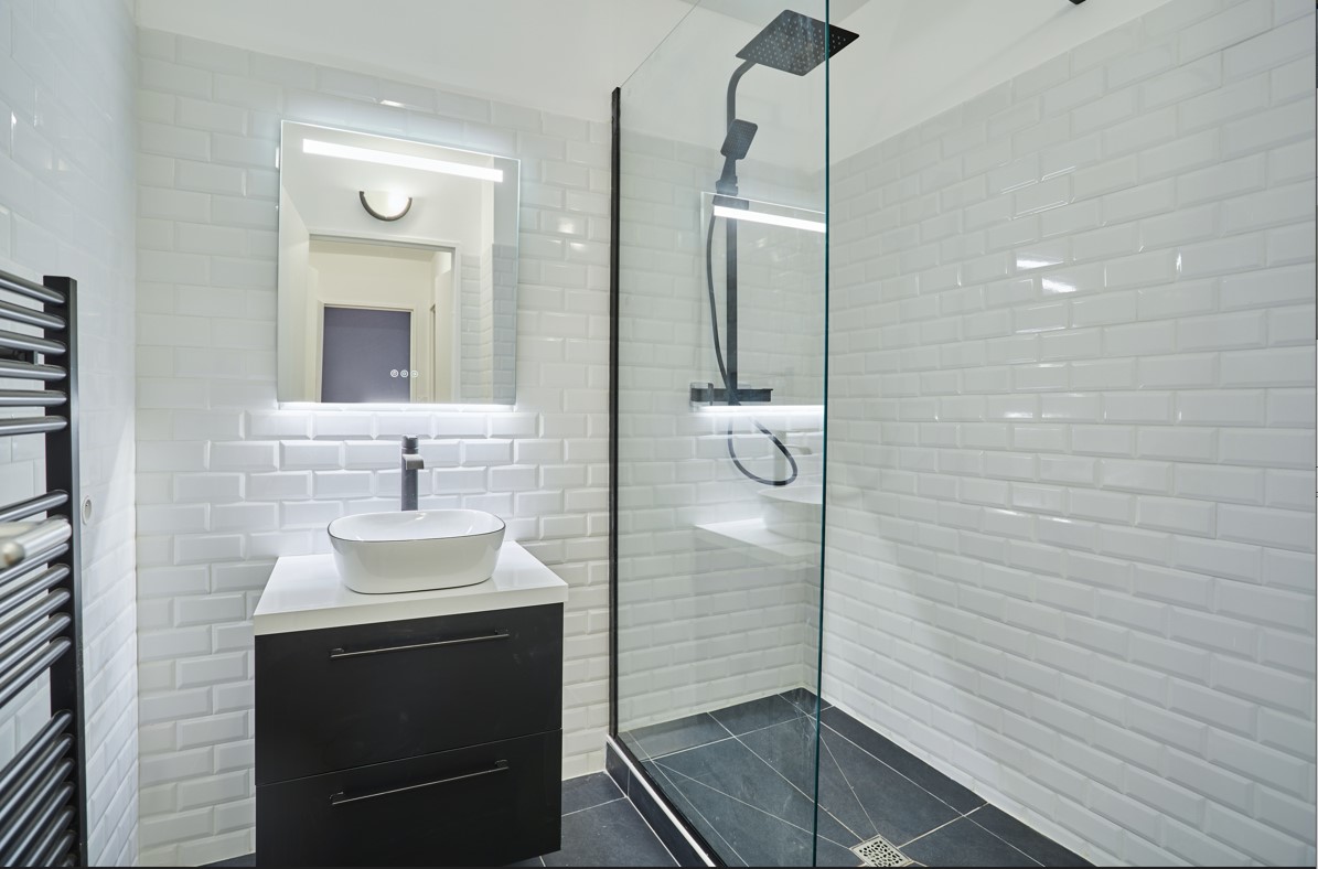 - مجموعة من الحمامات الحديثة، بخطوط عصرية ومنظمة