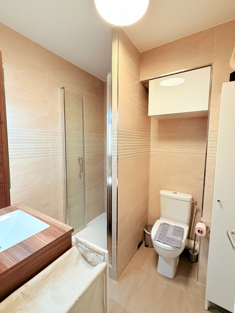 - Une salle d’eau renouvelée : simplicité, fonctionnalité, élégance.