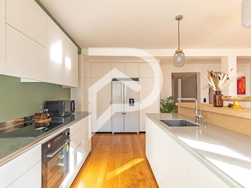 L’entrée pose le décor. On y trouve une ambiance apaisante, accentuée par des finitions récentes et des tons subtilement choisis. Le salon, vaste et baigné de lumière naturelle, se prolonge vers une cuisine contemporaine. Idéale pour les repas en petit comité comme pour les moments conviviaux improvisés.