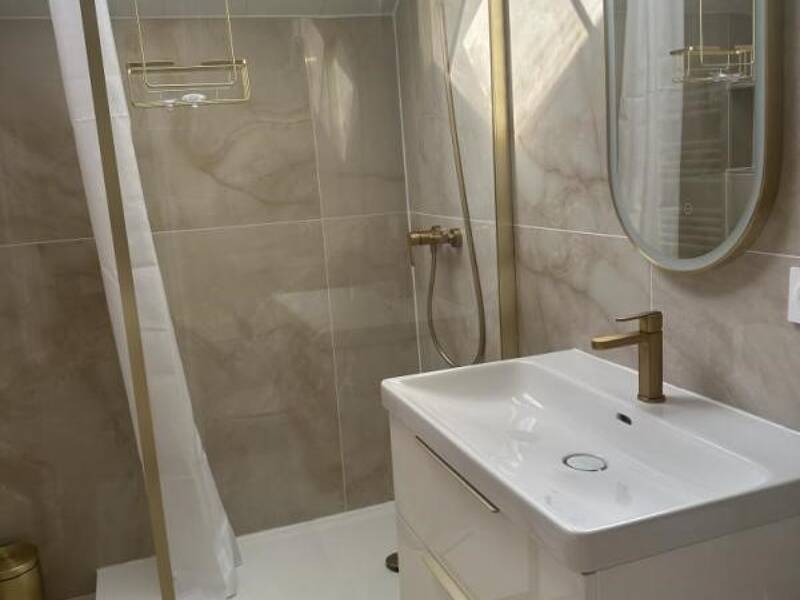La cuisine n’est pas en reste. Bien distribuée, elle facilite la préparation des repas, tout en maintenant le lien avec vos proches dans le séjour contigu. Les matériaux sélectionnés conjuguent l’esthétique actuelle à la robustesse, donnant le ton d’un intérieur à la fois élégant et praticable, adapté à tous les instants de la vie domestique.