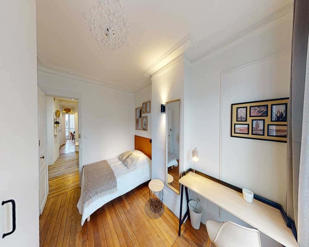La chambre, tel un cocon, s’adapte à vos habitudes. De nombreux rangements optimisent l’espace et permettent de tout organiser, des dossiers professionnels aux vêtements de ville. Prêt à emménager, le mobilier facilite la prise en main : vous n’avez rien à penser, à part déposer vos valises. Ce bien s’adresse avant tout à celles et ceux qui souhaitent un écrin privé, sans renoncer ni à l’ambiance du quartier ni à leur efficacité quotidienne.