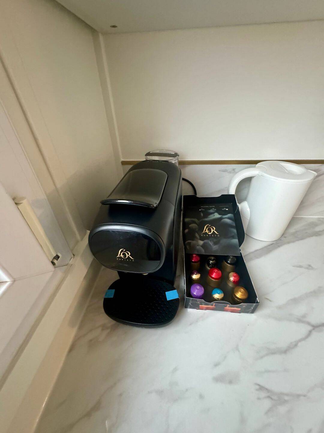 - Pour le petit-déjeuner pressé ou gourmand : bouilloire, machine à café, grille-pain complètent le tout.