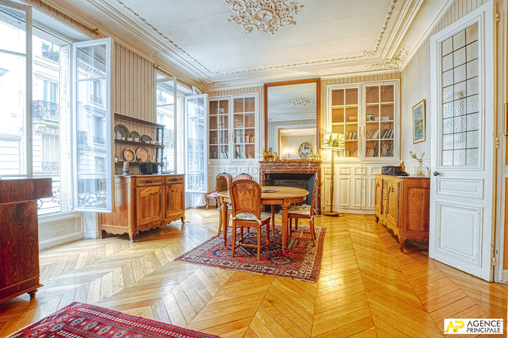 Vous entrez dans un salon baigné de clarté, rythmé par des moulures soignées et une cheminée ancienne. Les volumes généreux rappellent l’élégance du patrimoine versaillais, tout en offrant le niveau de confort attendu par un propriétaire moderne. Pas de compromis à faire entre noblesse architecturale et exigences actuelles. Imaginez un dîner d’hiver autour du feu ou un matin lumineux, fenêtres grandes ouvertes sur l’avenue animée.