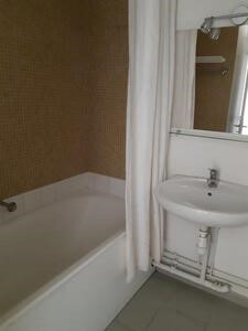 Côté nuit, la chambre invite à la pause. Calme, pensée pour la sérénité et la récupération. La salle de bains, sobre et moderne, complète agréablement l’ensemble avec son confort immédiat.