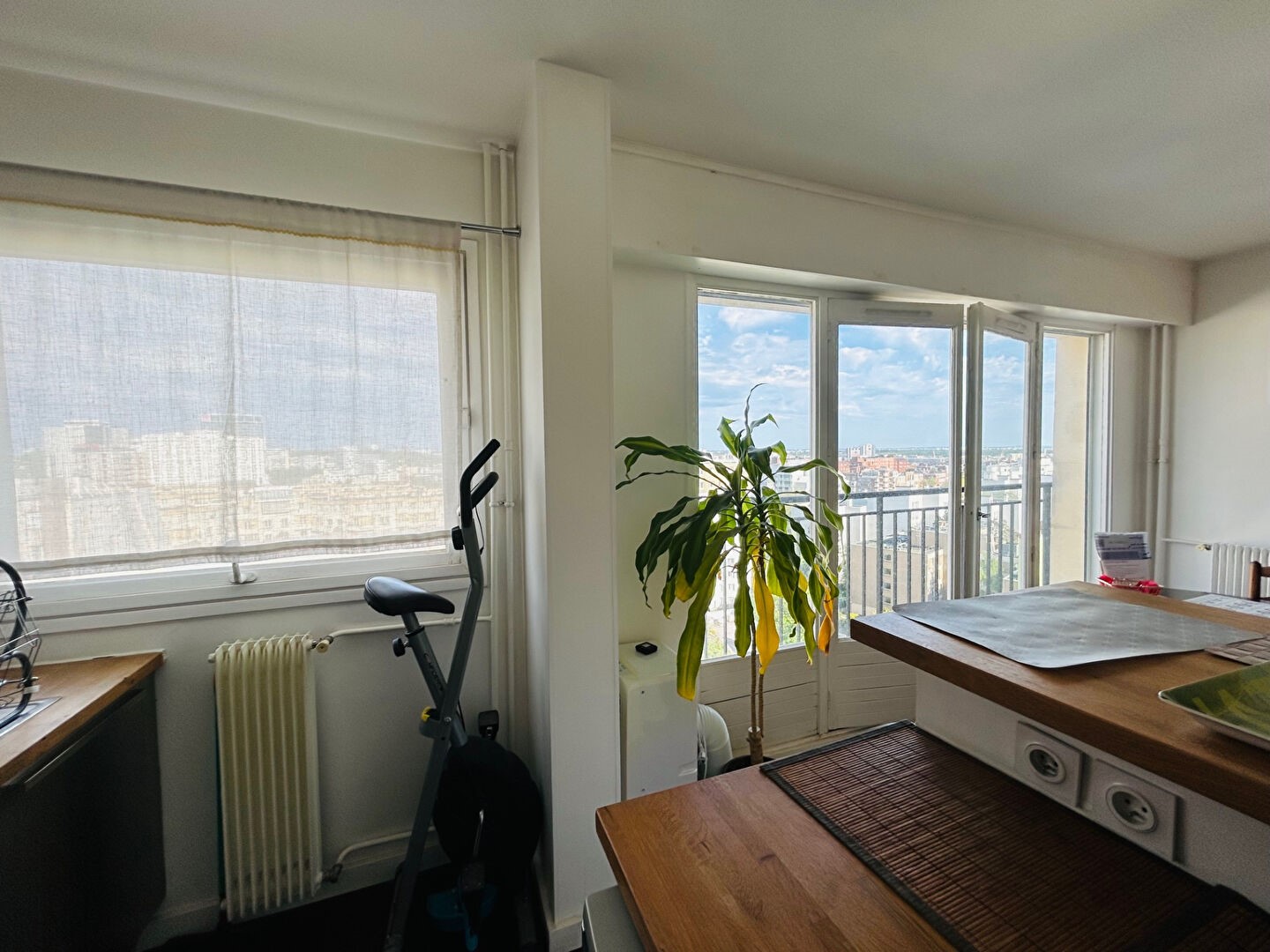 Ce studio de 32 m² perché au 11ème étage propose un panorama insoupçonné sur Paris, à couper le souffle. Dès l’ouverture de la porte, on comprend qu’ici, chaque mètre carré a été intelligemment exploité. Vous retrouvez une pièce de vie épurée, astucieuse, qui s’adapte à vos besoins, matin comme soir. Sincèrement, difficile de ne pas s’y projeter.