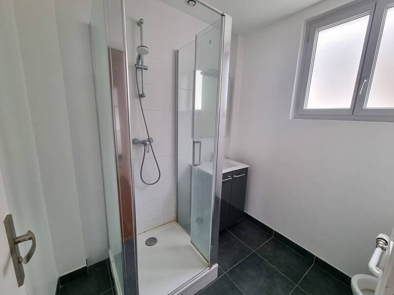 La salle d’eau, modernisée, accentue le plaisir du rituel quotidien. Chaque détail de ce studio a été optimisé, un cas d’école en aménagement urbain où chaque mètre carré compte, sans sacrifier l’esthétique ou le bien-être.