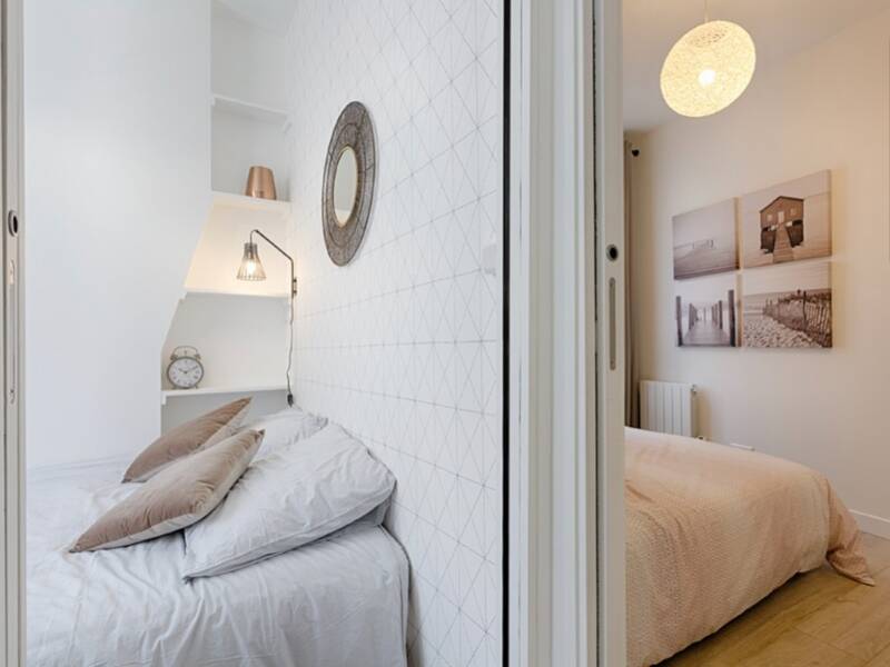 Open the door. You discover a light-filled living area. The double windows allow the sun to dance in from morning to evening. Prepare an omelet or whip up a dinner: the kitchenette is cleverly designed. Whether alone, with family, or friends, this space knows how to adapt. The soft tones enhance the feeling of tranquility, an invitation to rest after the city's hustle and bustle.