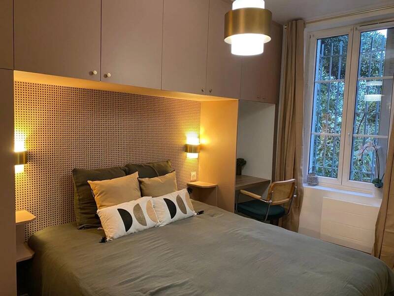 Let's continue the tour. The intimate bedroom invites you to take a break, to escape the hustle and bustle as soon as the door is closed. A space designed for recharging, guaranteeing peaceful nights, even when the city is bustling just steps away.