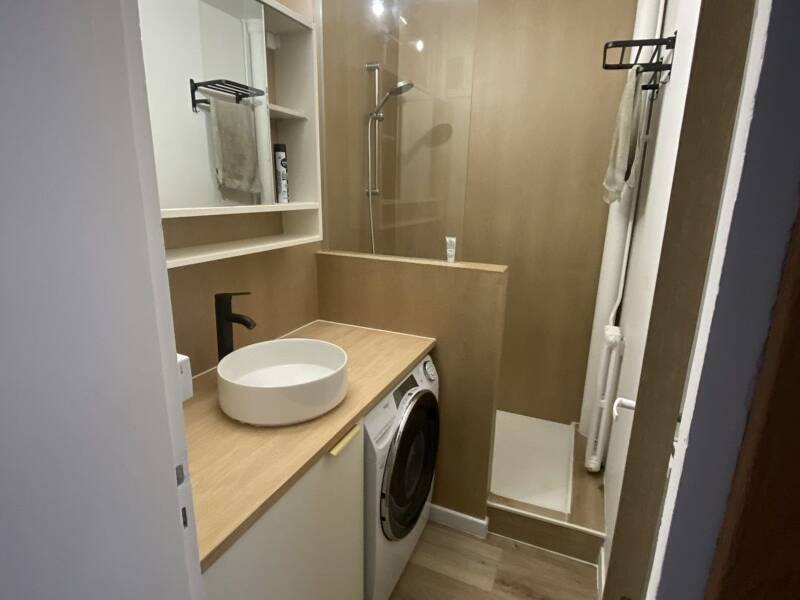 The bedroom, discreet and well-organized, invites rest. For a professional seeking serenity after a busy day, it’s a true haven. The shower room, decidedly contemporary, ensures a level of comfort rarely achieved in this segment.