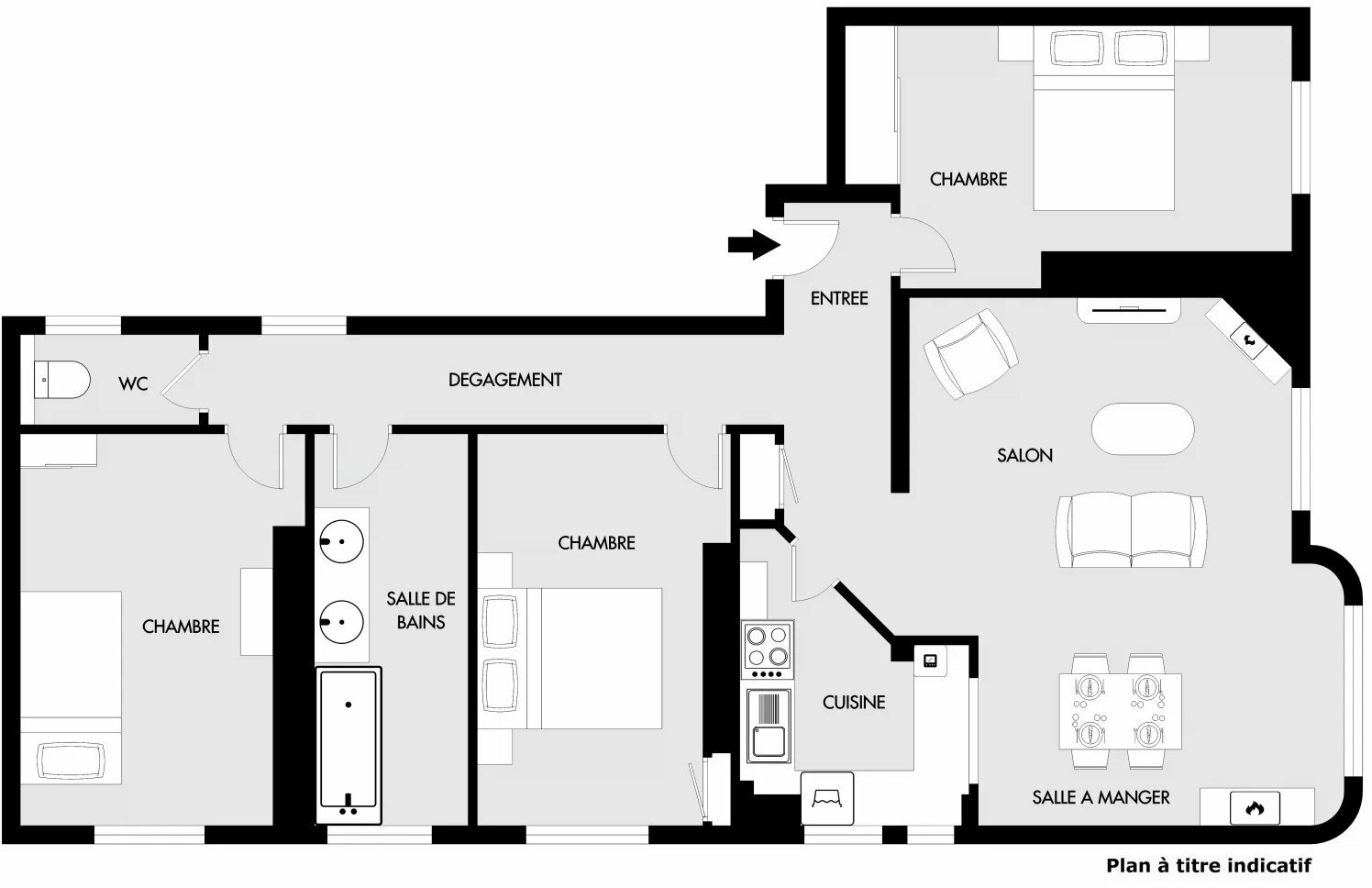 - An independent kitchen that opens, if needed, onto the living room: a real plus for creating a convivial space