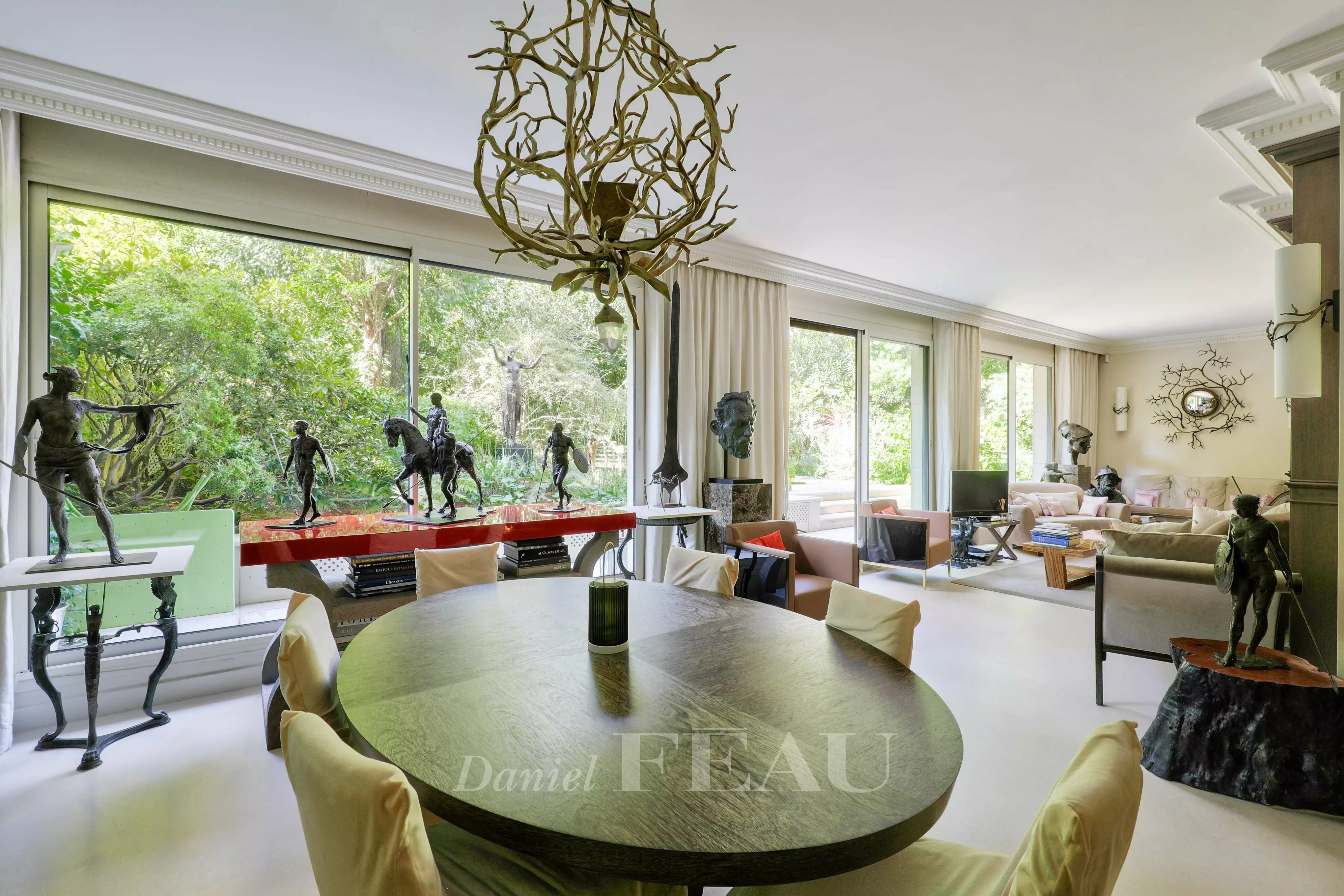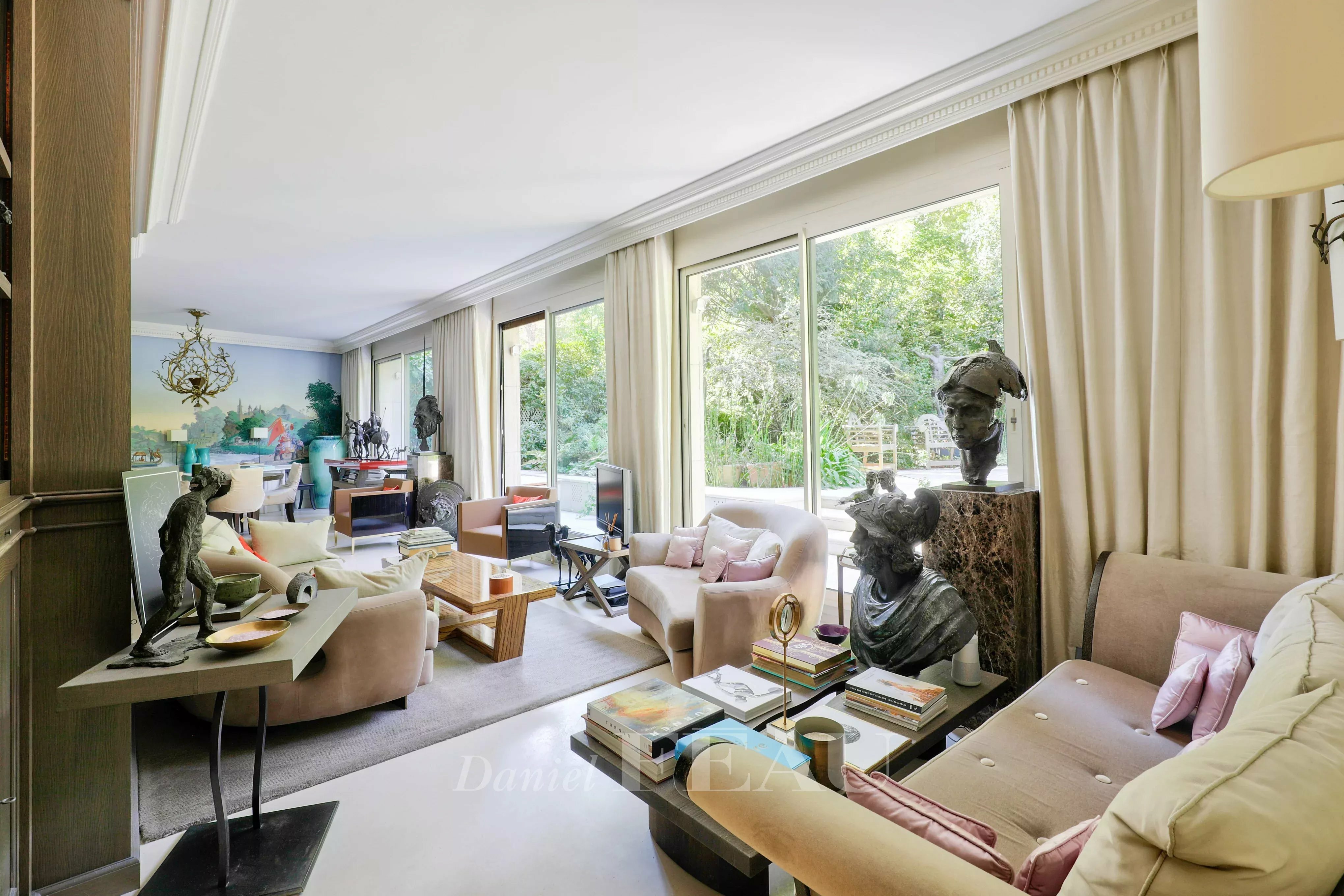 Seize the opportunity to live — or invest — in a ground-floor apartment that stands out in Neuilly-sur-Seine, in the sought-after Château area. This property of 140 sqm combines understated elegance and great tranquility, wrapped in a splendid landscaped garden of 315 sqm. Here, every room enjoys openings to the outside, allowing natural light to flow throughout. Forget about any overlooked views; the sight extends over a private greenery, conducive to well-being and serenity.