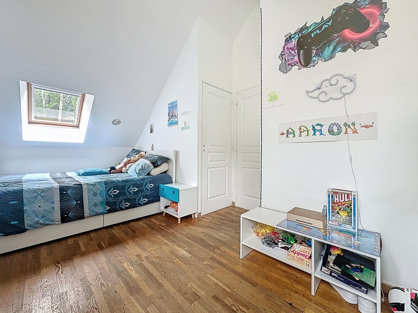 The upper floor holds true surprises. The parental space, calm and discreet, adjoins an office that is easy to adapt – for remote work, a reading room, or a guest bedroom. The three other bedrooms welcome children, friends, or collections, depending on the mood. The independent bathroom, equipped with toilets, completes this level designed for daily life.