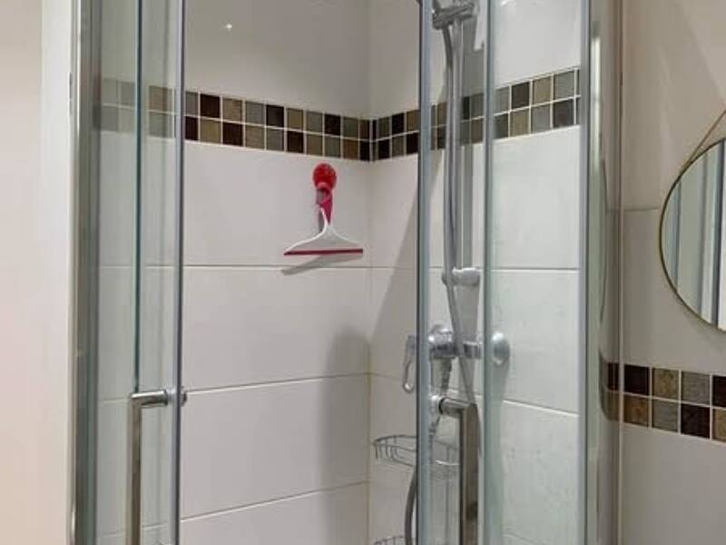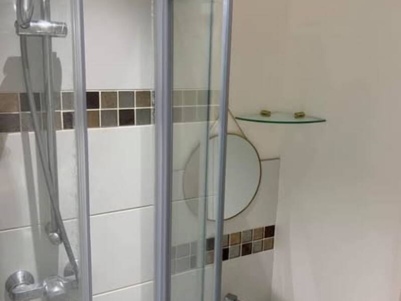 The bathroom is not to be missed. Contemporary shower, integrated toilet, warm flooring: the whole is simple, practical, and elegant, with that reassuring and attractive Parisian classicism.