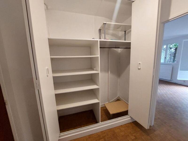 The vestibule, cleverly equipped with discreet storage, accommodates seasonal jackets, umbrellas, or tote bags without a single false note. Upon entering, the living area naturally draws the eye. Thanks to its double orientation, light floods in at all hours, and the window connects you, without any overlooked views, to a vast private garden. Imagine an afternoon of quiet reading while Paris buzzes outside.
