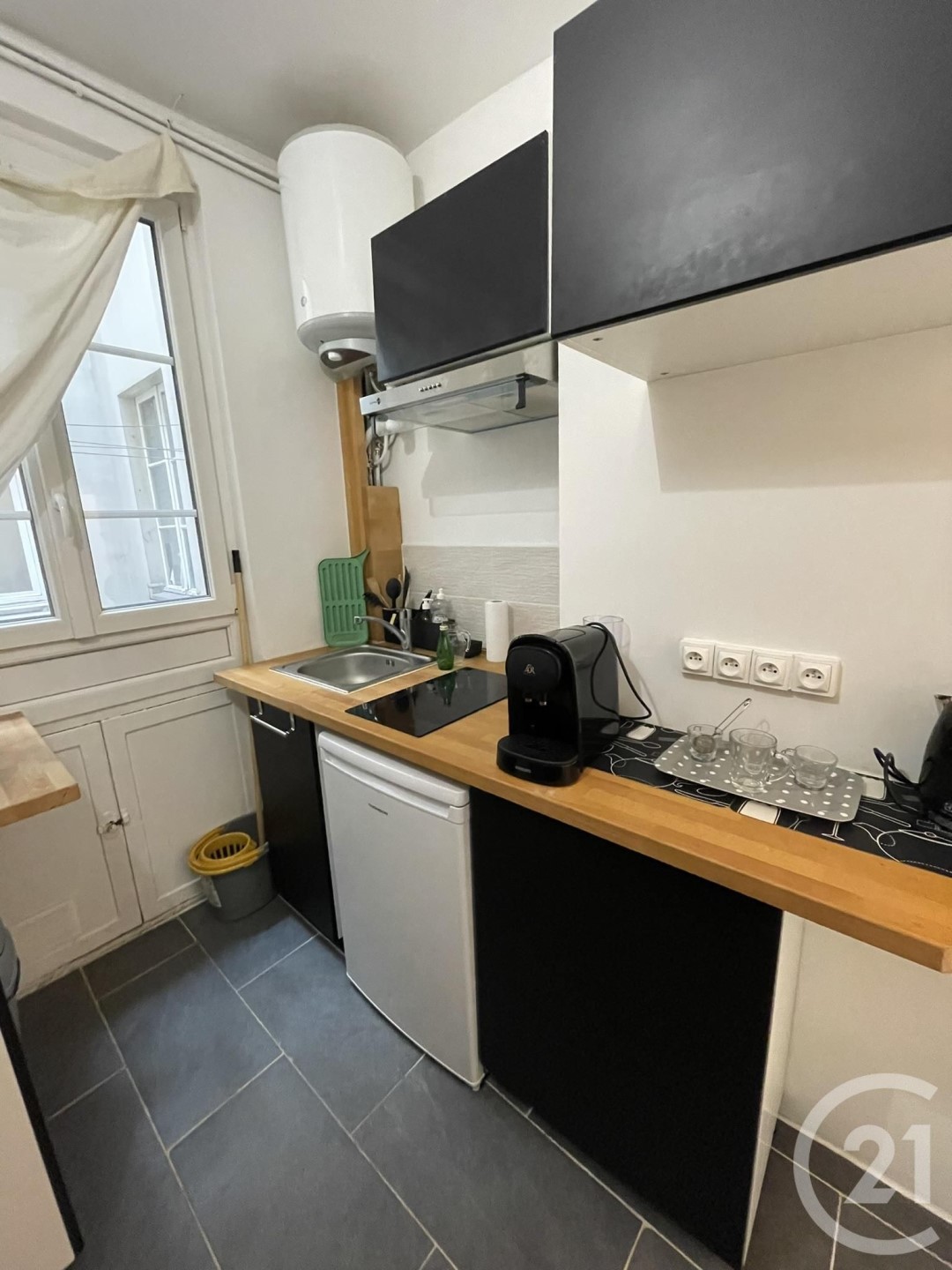 Let me introduce you to a furnished studio of 17sqm nestled in the 18th arrondissement of Paris. A discreet haven, away from prying eyes, protected within a peaceful courtyard. Just a stone's throw from the line 13 metro (Porte de Saint-Ouen), this place marries the here and elsewhere: everything remains accessible without enduring the city's turmoil.