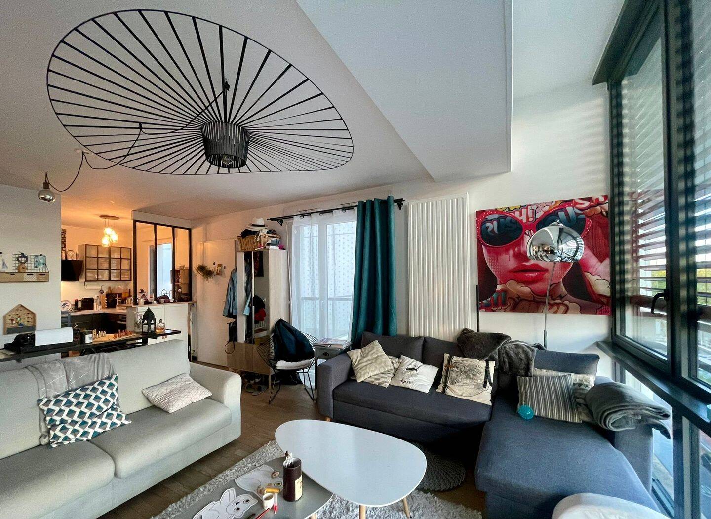 Are you looking for a space that stands out? Reach new heights with this top-floor duplex, reminiscent of a suspended house that overlooks the eco-neighborhood of Gennevilliers. Here, the 104 sqm Carrez (107 sqm total) creates an inspiring setting, illuminated by rare views of La Défense. Each day begins with a panorama that never gets old.