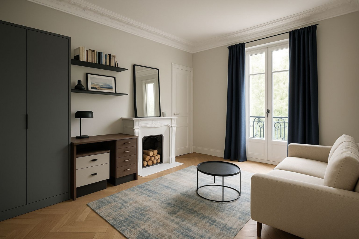 Let’s move on. Allow yourself to be charmed by a 50 sqm reception, bathed in light, spacious as desired. The large windows let the first rays in, creating a bright setting for your gatherings or peaceful mornings. From the balcony, no overlooking neighbors in sight – an unobstructed view, almost rare in Paris. Imagine enjoying an espresso at dawn, taking in this decor. The kitchen, designed for efficiency (and the pleasure of cooking), blends seamlessly with the rest.