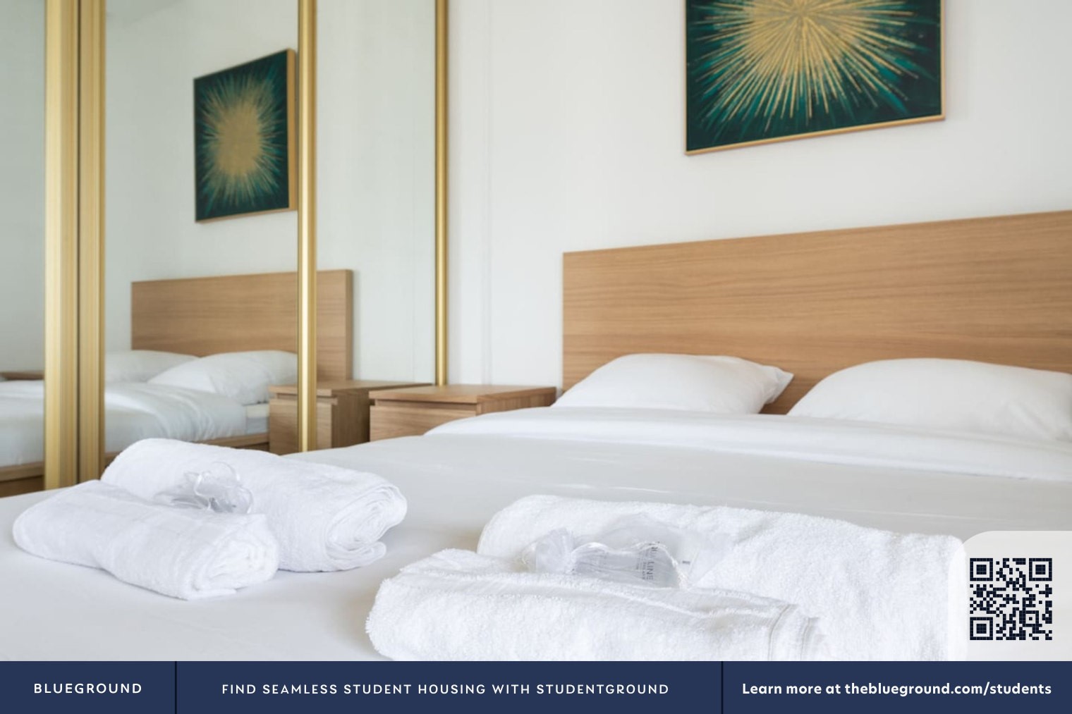 - A cozy and quiet bedroom, equipped with a queen-size bed