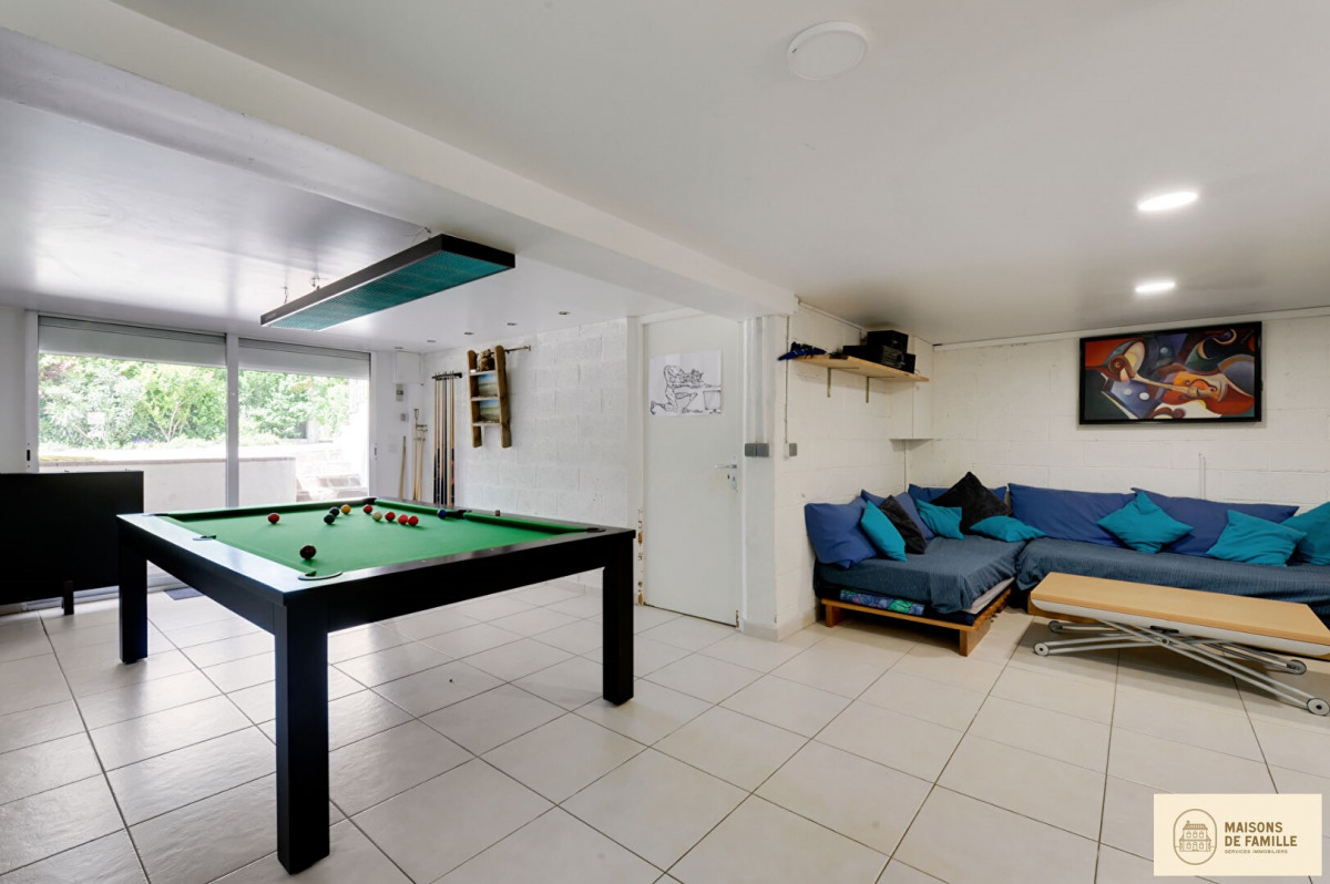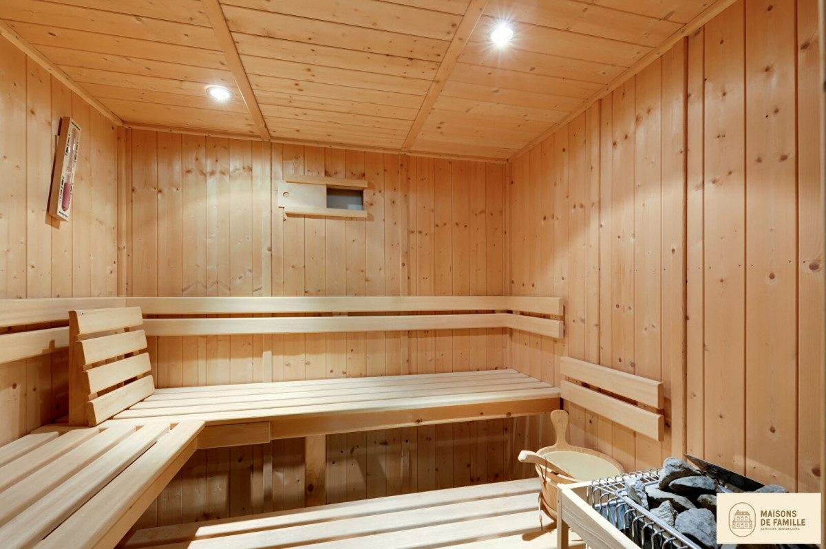 The basement, on the other hand, holds wonderful surprises. The 36 sqm game room is an adventure ground for children, or the perfect hideout for lively evenings. The sauna and wine cellar complete the picture, a perfect example of functionality combined with pleasure. It would be a shame not to mention the 950 sqm garden. Carefully landscaped, it becomes, season after season, the backdrop for your al fresco lunches, or simply for suspended moments, your feet in the grass.