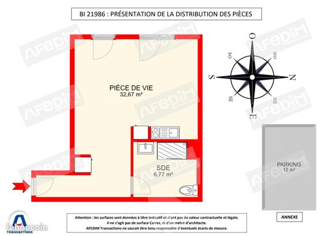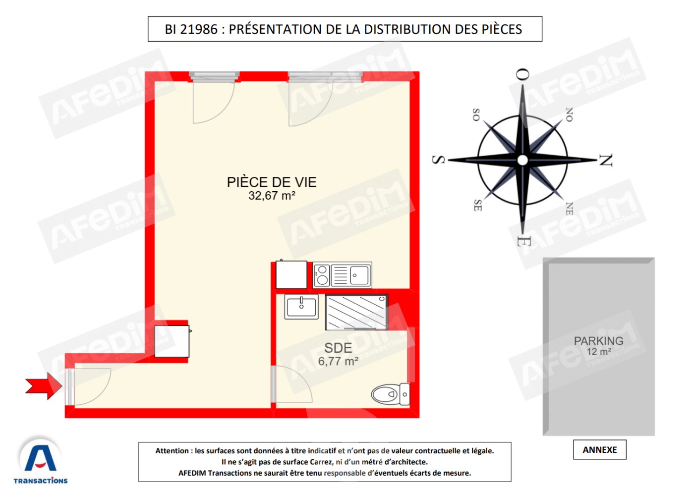 - A surface area of 39.01sqm (according to the Carrez law, for transparency)