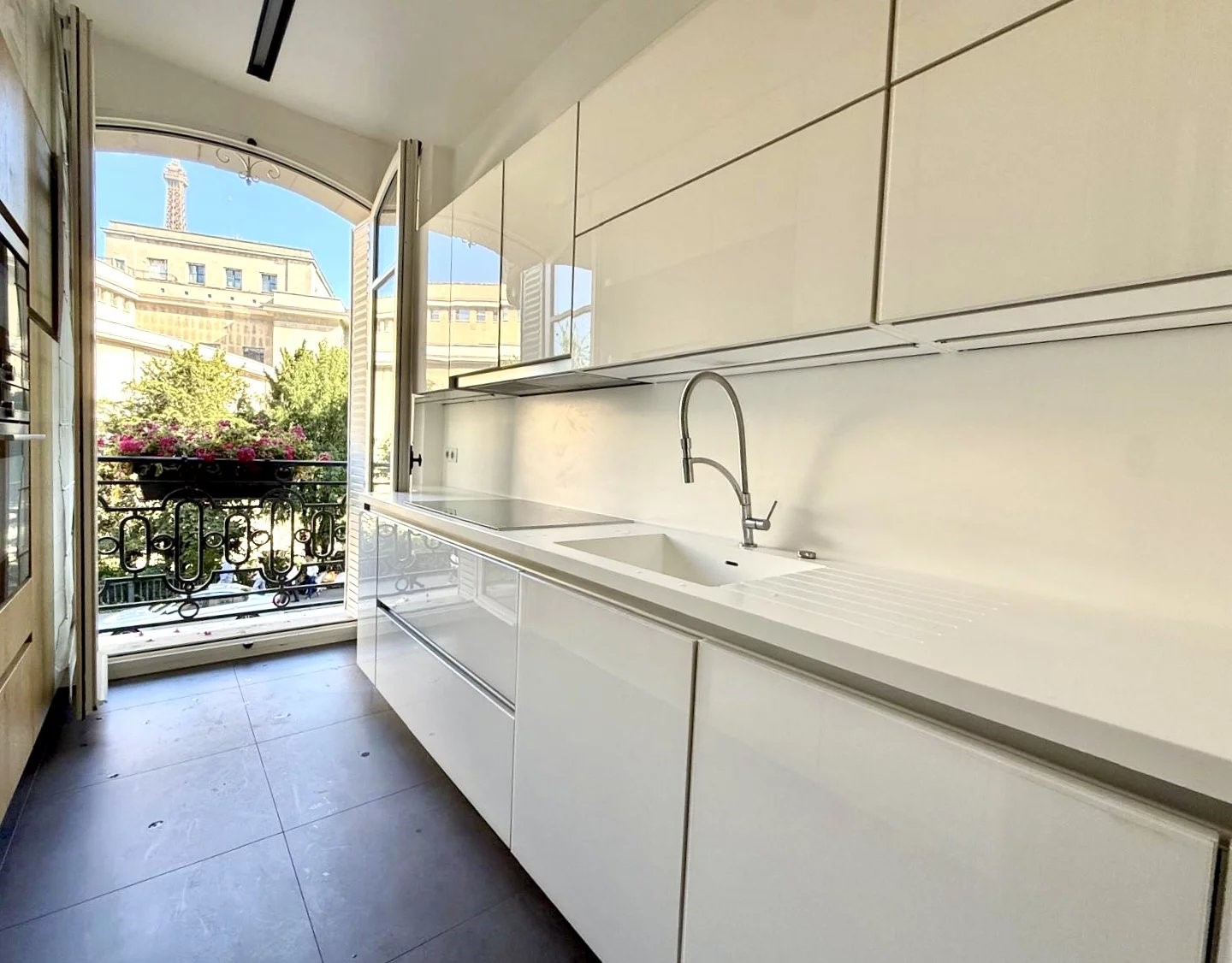 Attraversa la soglia, la tripla ricezione ti cattura. Ogni volume respira spazio. Vista libera, la torre Eiffel come ospite d'onore dalle tue finestre. I camini antichi e le modanature sottilmente conservate fanno da sfondo ai tuoi momenti in famiglia, così come alle tue cene di lavoro. Ci si lascia rapidamente coinvolgere dal fascino senza artifici, quello che non invecchierà mai.