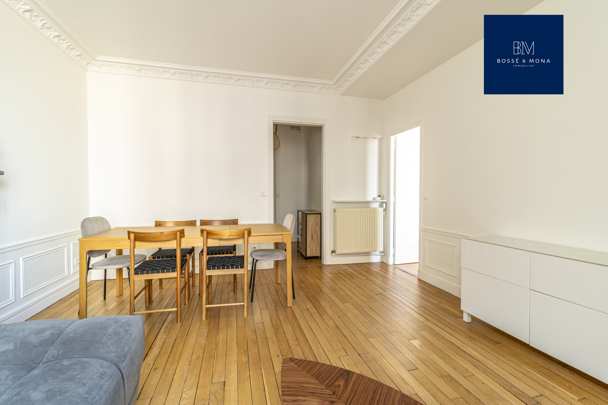 Quello che vi propongo oggi è un appartamento di 63 mq a Parigi, nel 16° arrondissement. Immaginatevi a due passi dalla metropolitana Chardon-Lagache, a cento passi da tutto ciò che conta nel quartiere. Fin dall’ingresso, l’intimità regna: la luce si insinua elegantemente, rivelando pavimenti lavorati e cornici che appartengono solo agli indirizzi d’altri tempi.