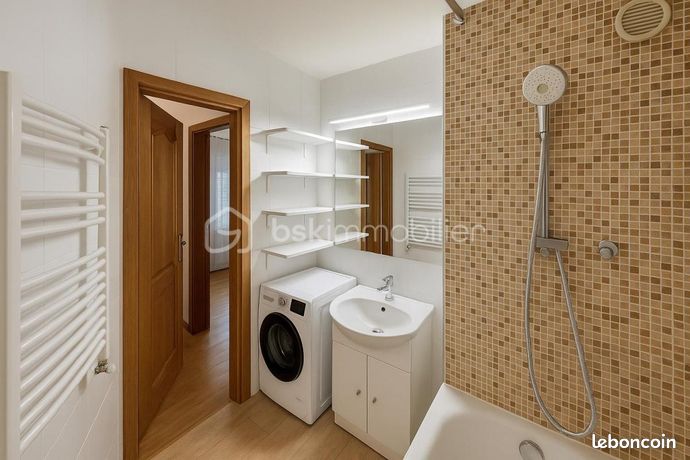 Il bagno raccoglie l'essenziale, mantenendo un tocco di carattere. Pratico, senza trascurare i materiali. Una vasta doccia, abbastanza spazio di stoccaggio per avere tutto a portata di mano: semplicità ed efficienza, nulla di improvvisato.