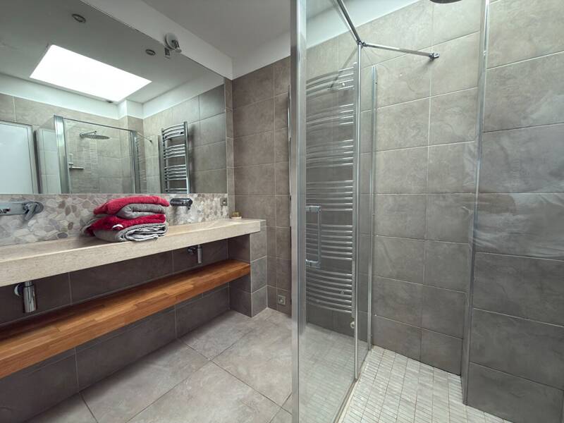 Il piano superiore vi riserva una suite principale inondata di luce, prolungata da un balcone privato. Sistematevi all’esterno per una pausa caffè o semplicemente godetevi il panorama, lontano dagli sguardi. Pratica, una sala d'acqua integrata e ampi spazi di stoccaggio garantiscono la fluidità di ogni mattina.