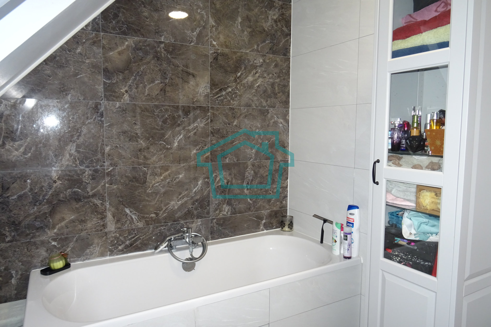 Il piano superiore riserva tre ampie camere. Una stanza aggiuntiva adiacente si trasforma volentieri in ufficio. Per gli appassionati del lavoro da remoto, è un vantaggio raro. Il bagno separa chiaramente la zona notte, preservando intimità e funzionalità. Ognuno trova il proprio posto.