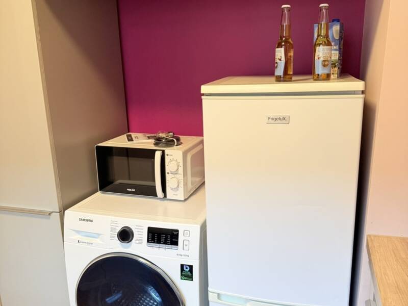 La cucina separata è stata progettata per accompagnare ogni passo dello chef creativo. Dotazioni complete, dalla lavastoviglie alla lavatrice, passando per il frigorifero dotato di congelatore: tutto è pronto per improvvisare una cena al volo o pianificare un pasto curato.