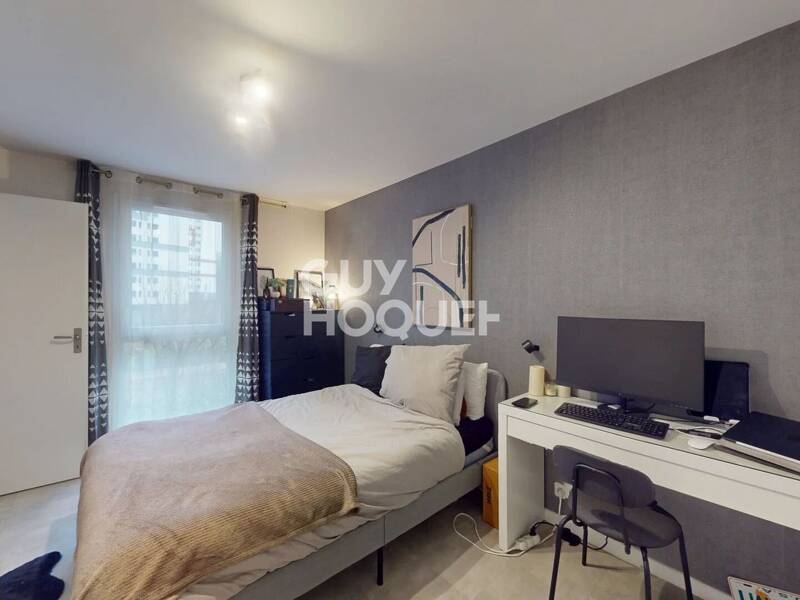 Lo spazio notte non è da meno. Questa camera accogliente permette di isolarsi dal trambusto esterno, una vera promessa di notti riposanti. Per quanto riguarda il bagno, il raffinatezza si sposa con l'utile: spazi di stoccaggio ottimizzati, finiture moderne, nulla da dover prevedere. Un appartamento curato con attenzione, pronto a ospitare la tua quotidianità senza indugi.